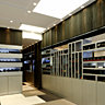 Ce splendide comptoir des chocolats de 120 m2 a été dessiné par l’architecte-décorateur belge Olivier Lempereur qui a misé sur la transparence, des tons contrastés de gris, de blanc et de noir, ainsi que sur des matières chaudes : l’érable et le mélèze.