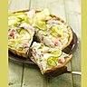 Une recette gourmande de tarte au fromage blanc, concombre et dés de jambon, façon tzatziki.