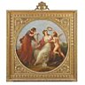 Acquise en 1779 par Pierre de Courlande, grand collectionneur et une des plus grosses fortunes d’Europe, cette paire de tableaux à vue ronde est emblématique des scènes allégoriques empreintes de sentimentalité qu’Angelica Kauffmann réalisait.