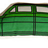 la vespa sympa, la coccinelle rouge et la chevrolet verte , 3 coussins aux formes découpées à poser sur un canapé rétro.