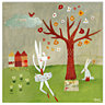 Touche artistique pour décorer un mur de chambre d'enfant, un tableau fait par une artiste "les lapins dansants" de Anzil est une impression numérique en finition mate sur châssis au format de 30 x 30 cm et au prix doux de 32,90 €, vous aimerez également pour accompagner le tableau ses lapins dansants déclinés en stickers.