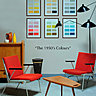 Les couleurs vives, synonymes de gaieté et de prospérité ont le vent en poupe dans la décoration des années 1960 : papier-peint, tissu, céramique et matières plastiques rivalisent de motifs et d’accents toniques. L'influence des courants artistiques, Pop Art, Op Art, Psychédélique Art, est prépondérante. Et le retour à la nature n’est pas en reste ; il prône une joie de vivre incontestable. Dans le design du milieu des années 60, les couleurs sont de plus en plus intenses. La majorité des teintes de la collection sixties ont été ont été produites à partir d'échantillons de tissus, de papiers peints ou de photos d'ouvrages et de revues de décoration de l'époque.