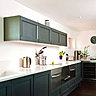 Premier poste, le pôle lavage regroupe l’évier, le lave-vaisselle et la poubelle. La poubelle est dissimulée sous un meuble bas et le lave-vaisselle positionné non loin de l'égouttoir de l'évier.