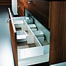 Les placards sont de plus en plus délaissés au profit de tiroirs de grandes dimensions à ouverture totale et fermeture silencieuse qui permettent de sortir plus facilement le contenu. Ces tiroirs s’équipent de systèmes modulables, de séparateurs amovibles pour caler les assiettes ou casseroles et optimiser le volume de rangement.