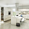 Conviviale grâce à son îlot double usage, la cuisine Nova d’Hygena joue la carte du graphisme et du minimalisme intemporel. Brillantes, ses façades laquées réfléchissent la lumière et agrandissent visuellement la pièce. Blancs, les meubles se fondent dans le décor. Le plus Hygena : les poignées apparentes sont supprimées et remplacées par des prises en main intégrées, plus discrètes et plus modernes. Nova. Hygena.