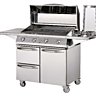 9. Ultra résistant, barbecue « Deluxe » à gaz en inox avec large plan de cuisson. 4 brûleurs, couvercle pour cuisson à effet de fou, 2 tiroirs. Ecran thermique métallique pour se protéger des brûleurs. 108 x 170 x P 59,5cm. 3600€, Kitchen Aid
