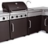 3. Complète, cuisine d’extérieur modulaire « Freedom Combo L » composée de différent élément de cuisson, rangement et d’un point d’eau en inox et acier galvanisé. 4 brûleurs, brûleurs arrière à infra rouge (rôtissoire), réchaud latéral, L 300/168 x 57 x H 122cm. 4500€, Grand Hall chez Barbecue & Co
