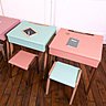 Au rayon bureaux d’enfants, on trouve aujourd'hui des pupitres d'écoles anciens, rénovés, ou des modèles récents plus vrais que nature, avec un banc ou une chaise. On trouve également des tables d'écolier des années 50 ou 60, en formica coloré, donc le plateau se soulève pour ranger les crayons et les dessins.