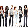 Non moins modeuses, les Barbies en jean affichent leurs douze silhouettes longilignes et mettent en valeur le jean, basique incontournable des dressings féminins et masculins. Après une collection très « chanellisante » de petites robes noires en 2010, Barbie est tout jean en 2011 avec du chic, du décontracté, du slim, du boot-cut, du taille haute ou basse. Tous les genres du denim sont représentés. 40 € dans les magasins de jouets.