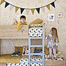 Tout l’univers de la chambre d’enfant est décliné; le goûter et les jeux, l’aménagement de la chambre, avec une multitude d’accessoires, vaisselle, boîtes et paniers de rangement… Le lit train, pièce maîtresse de la collection, correspond à une vraie attente des parents et à un besoin de sécuriser l’enfant, de composer un lit cabane, avec un bureau et des rangements. « Mais ne nous trompons pas, ce sont toujours les parents qui choisissent, non pas les enfants pour les éléments principaux de la chambre, » précise Pierre Favresse. Côté textile, couvre-lit, coussins, tapis, complètent la gamme avec des variantes autour des motifs du tendre lapin, évoquant tour à tour le câlin, le doudou et Alice aux pays des merveilles !