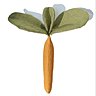 Les feuilles des carottes c'est bon pour les bébés, elles sont douces et tendres et serviront aux petits à se faire les dents, la carotte mesure 8cm x 28 cm.