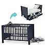 Plus étonnants encore, le berceau et le lit junior qui deviennent respectivement bureau et bibliothèque, pour rester dans la chambre d’enfant ou, pourquoi pas, migrer dans le salon. Très épurés pour ne pas s’en lasser, il suffit de débarrasser ces meubles de leurs « accessoires » pour ne garder que la structure, qui prend soudain une toute autre dimension et une nouvelle fonctionnalité.