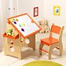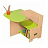 Formes simples, matériaux naturels et respectueux de l’environnement, coloris tendres, il y en a pour tous les goûts et tous les âges. A partir de 3 ans, les enfants peuvent s’asseoir à une table où ergonomie et astuces sont à l’honneur. La chaise de colloque avec tablette amovible inspire un premier bureau qui comporte un petit siège et une tablette façon conférence, et intègre en même temps un petit rangement sous l’assise pour y ranger ses petits livres (59 €). Plus importante, une table-bureau d’architecte à plateau magnétique inclinable (85 €) permet aux petits de dessiner, positionner des formes aimantées, faire de la pâte à modeler…