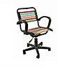 Enfin, une véritable chaise de bureau, avec ses 5 roulettes comme il se doit, permet à l’enfant de s’asseoir confortablement, l’assise et le dos soutenus par des élastiques multicolore. Son esthétique innovante n’est pas sans faire penser à la célèbre chaise 101 de René Herbst lancée en 1930.