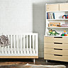 P&C: Côté mobilier, un grand nombre de nos modèles sont évolutifs ; les lits vont de la naissance jusqu’à 7 ou 8 ans chez les danois Leander ainsi que chez Œuf NYC. Les chaises hautes et certains bureaux évolueront avec la croissance de l’enfant. Mais comme nous essayons d’avoir une large palette de prix, nous proposons aussi du mobilier design en carton : le berceau à 79 € se monte en deux secondes, il est solide, livré avec un matelas et recyclable. A décorer avec les feutres des grands frères et sœurs !