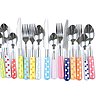Afficher la galerieDes tons colorés qui mettront de la gaieté à la table. Chaque couvert a une couleur différente avec des pois. Des couverts pop à utiliser tous les jours ! Set de 16 couverts, 32 €, ctendance.fr.