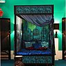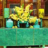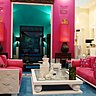 Entrez à travers la galerie de photos dans ce monde de l’Empire du Milieu. Jean y a conçu un monde de petits personnages qui circulent dans une jungle aux multi-couleurs, des jarres avec des éléphants, animal symbolique pour les chinois et des pagodes. Dès l’entrée, vous traverserez un mur de porcelaine aux couleurs tomates, de part et d’autre deux meubles intérieurs rouge vif et recouvert de porcelaine noire et deux lances.