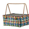 On dispose aisément tous ses ustensiles et son déjeuner dans ce charmant panier tressé multicolore esprit africain.