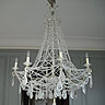 A la Renaissance, le lustre se construit en métal, pour orner les lieux mondains, comme les théâtres ou les demeures à haut plafond. Ce n’est qu’au XVIIIème siècle, que le cristal devient la matière indissociable du lustre, ou pendeloques et pampilles s’insèrent au milieu des prismes. Avec le développement de l’électricité, les bougies sont remplacées par des ampoules, qui gardent souvent une forme de flamme en guise de clin d’œil. Cependant, suite à l’architecture moderne, qui tend à diminuer la hauteur sous plafond, les lustres furent remplacés par des suspensions plus simples et moins couteuses, ce qui explique leur disparition progressive.