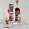 Si l'idée vous tente, vous aurez besoin : d’une cartouche de colle Sader-Fixer sans percer et Tout terrain tous travaux, d’un plat à tarte en verre, de petits objets en plexiglas de formes différentes, d’une guirlande lumineuse blanche, de petits sujets de Noël ou jouets en plastique, de strass rouges et de petits carreaux de mosaïque en résine ou en verre.