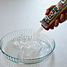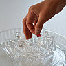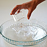 Etape 1- Versez du liquide vaisselle dans le fond du plat à tarte pour pouvoir démouler le décor après usage, posez les éléments en plexiglas.