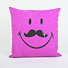 Un coussin Smiley by Maison de Vacances.Partenariat entre Maison de Vacances et Smiley pour des coussins à moustache, des porte-monnaie rigolos. On a flashé sur le coussin fuschia, 95 €, www.smiley.com