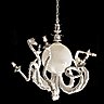Mais la fascination procurée par les pieuvres et les méduses n’est pas uniquement le fait de leurs particularités anatomiques. Elles présentent un jeu de couleurs intenses, en contraste saisissant avec l’obscurité de leur monde. Leur représentation tend à se parer de nuances variées, quitte à jouer sur le bigarré, en utilisant des motifs différents pour chacune des tentacules. En outre, les méduses prennent l’apparence de sources rayonnantes dans les fonds marins, ce qui explique leur succès dans la conception de luminaires. La forme de l’ombrelle se prête à recevoir une ampoule, alors que les filaments apportent du mouvement à la composition. Lorsque la lumière est allumée, le corps reflète la même image qu’une méduse abyssale, ce qui confère une part d’étrangeté à la pièce.