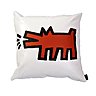 Précurseur du « Street Art », Keith Haring est considéré comme l’une des figures les plus marquantes de l’art contemporain du XXème siècle. Débutant dans les rues et les couloirs du métro de New-York, l’artiste connaît un succès fulgurant, grâce à son code graphique à l’iconographique caractéristique. Sous une certaine simplicité, le trait se fait la synthèse de formes géométriques, surlignées par un large trait noir. Dans un esprit pop art, il y appose de larges aplats de couleurs vives, à l’éclat visuel. Derrière une répétition infinie, Keith Haring forme une galerie de pictogrammes autour de bébés, d’animaux et de silhouettes. Le mouvement s’incarne dans des lignes énergiques et rythmiques, comme une pulsion de sexualité, de vie et de mort. La griffe de Keith Haring reprend les codes de la bande dessinée, avec une saturation dans les formes, les lignes et les couleurs, où s’incarne la peur du vide.