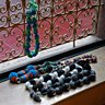 Les pochettes rayées en sabra , les colliers Chonchon et Marie en boules de mika crochetés, et les colliers en laine récupérée montés sur lien de cuir et mélangés aux pièces et perles anciennes sont de toute beauté.
