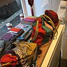 La collection des tissus El Camino de Los Altos est essentiellement créée pour l’univers de la maison, composée de coussins, nappes, sets de tables, chemins de tables, torchons ... Mais aussi des châles et de petits accessoires comme des porte-monnaies, carnets, pochons, bracelets, sacs etc. Un vrai rayon de soleil dans cette vitrine parisienne.