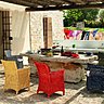 Outre le mobilier à proprement parler, Unopiù propose différents accessoires. Une collection de luminaires d’extérieur, des objets d’art de la table, des pots de fabrication artisanale, en terre cuite toscane, et autres ustensiles enrichissent judicieusement l’ameublement de jardin.