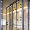 Le lieu en lui-même est un écrin inspiré des galeries couvertes du vieux Paris, une petite boutique de 30 m2 qui rappelle les enseignes des artisans d’antan ; même si les matériaux (marbre, zinc et verre) sont ultra contemporains. Le gris zinc des toits parisiens et l’éclat d’or des coupoles d’églises sont omniprésents dans la décoration de ce mini boudoir qui se prolonge par une vitrine animée de la capitale, scénographie du nez amoureux de « sa » ville.