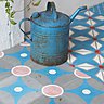 Infos pratiques : Authentiques carreaux de ciment à décors incrustés Dimensions : 20x20 cm – Epaisseur : 16 mm pour le sol, 10 mm pour le mur Prix unitaire : 5,05 € Prix au mètre carré : 126,21 €