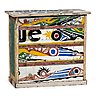 En effet, les longues et fines embarcations utilisées par les pêcheurs sont décorées de figures géométriques très colorées et de calligraphies noires contrastantes. Avec leurs motifs originaux et uniques, il n’existe pas deux barques similaires. Après leur périple océanique, long d’une trentaine d’années environ, la mer les a joliment usées et peuvent entamer une nouvelle vie. Le bois - le samba - ne reçoit aucun traitement postérieur ; façonné par les éléments, il est immédiatement prêt à être transformé.