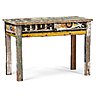 Tables, cadres, tabourets, commodes, chaises, têtes de lit, bancs et même babyfoots sont créés grâce à cet étonnant recyclage. L’aspect coloré et vieilli du bois employé donne un cachet incroyable à ce mobilier à l’allure volontairement très simple et fonctionnelle. Les meubles, très résistants du fait du bois utilisé, se placent aussi bien à l’intérieur que dans le jardin.