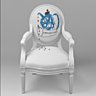 Derrière cette belle histoire de broderie, se cache Navina, la petite filleule de 5 ans de Jean-François. Un jour qu’elle le regardait travailler, elle lui affirme sans crainte, qu’elle saurait certainement mieux que lui inventer le décor brodé d’un fauteuil médaillon Louis XVI. Et quel serait ce dessin ? Eh bien… une cafetière fêlée est pour Navina le motif qui s’applique le mieux à ce type de fauteuil. Amusé, Jean-François demande à son chef brodeur de retranscrire à l’identique le dessin, ce qu’il arrive à faire sans aucune différence et sans altérer la spontanéité du dessin original de l’enfant.