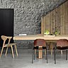 Technologies avancées, outils et méthodes de transformation du bois adaptés au processus de création, finitions impeccables à la main s’ajoutent à la fabrication en bois des prototypes de meubles. « Lors de la conception d’un nouveau modèle, plutôt que choisir une première étape de modélisation en 3D, nous préférons travailler la pièce dans sa matière véritable et vivante, le bois, ce qui nous permet de mettre en valeur ce matériau. Ainsi, bien que les meubles soient produits industriellement, ils offrent un supplément d’âme qui fait toute la différence », explique Alain Van Havre. Ainsi Ethnicraft pratique l’usinage CNC permettant de sculpter la pièce en 5 axes avec une finition à la main qui doit être ressenti par l’acheteur du meuble qui recherche ce détail et le témoignage du travail accompli. Dans notre métier, tout est une question d’équilibre entre la part artisanale et la part industrielle. Le trait de crayon accompagne tous nos projets et on mélange le dessin numérique en 3D avec la main de l’homme et l’interaction de la matière. Nous voulons éviter la déshumanisation de la grande série en la contrebalançant par l’apport du trait manuel. Il faut faire évoluer le côté épuré et zen, tout en conservant l’ADN de la marque qui se caractérise par une économie de matières comme le Bauhaus a évolué avec la couleur… » Avec Notre Monde, une gamme d’objets complémentaires, Ethnicraft s’associe à des artistes pour proposer de nouvelles matières comme le cuivre ou le verre et de nouveaux graphismes qui enrichissent son univers. Et la firme n’hésite pas à mettre en scène ses créations dans des ambiances vintage, plus contemporaines ou au contraire plus classiques pour montrer leur capacité à s’intégrer partout.