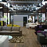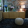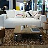 Coté couleurs, noir et blanc avec une pointe d’acier, bordeaux tirant vers le mauve, retour du rouge vif et des couleurs acidulés vives du pop art type Vasarely ou des pays nordiques. Et ce qui est normal une collection basique dans des matériaux naturels au design aux lignes pures, qui donne un coté Zen avec une pointe de campagne à travers des poufs tapissés de peaux de vaches.