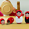 Jouet culte de la Russie, la matriochka ne laisse pas insensible, et sa bonhommie rappelle les souvenirs d’enfance. Chaleureuse par ses formes et ses couleurs, elle n’en reste pas moins un objet intelligent, qui annonce le concept modulaire grâce à ses emboîtements.