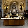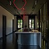 Plus de 4 ans ont été nécessaires pour dépoussiérer la maison néo-classique de 1840, tout en conservant son histoire. Le respect du patrimoine est bien présent : on maintient le superbe escalier et sa rampe en fer forgé, mais de grands accordéons miroirs en verre soufflé bullé lui donnent une impression de profondeur ; dans les chambres, les cheminées en marbre ne sont pas enlevées, mais habillées de lave volcanique émaillée de couleur ; dans l’espace dégustation de vins, les crus sont bus sur un bar tout en hauteur en Corian blanc et acier inox ; même si les livres s’éparpillent dans les étagères, la bibliothèque a été transformée en cabinet de curiosités, avec des objets hétéroclites, témoins des voyages de la veuve Cliquot, dès le 19ème siècle ; repeintes en noir, les boiseries de la salle à manger s’effacent pour laisser dominer l’assiette et le verre, car dans cette pièce-là, seuls comptent les plats et les accords avec les millésimes rares. Mais le travail de Bruno Moinard réside aussi dans le souci du détail : les suspensions en albâtre en forme de bourgeon dans les salles de bains, l’exotisme d’objets en corne et d’animaux empaillés habillés d’une touche orange, le billard lui aussi, orange et noir aux couleurs de la maison, la signature VCP discrètement posée sur le linge, l’emplacement des baignoires dans l’axe de la cathédrale afin de jouir de la vue sur les tours …..