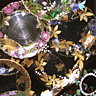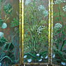 Le mobilier et les objets qui composent Le Jardin de verre sont entièrement consacrés aux fleurs. Des assiettes aux verres en passant par les photophores ou de magnifiques vases et autres cache pots se parent de mille fleurs et herbes le tout peint à la main avec une grande dextérité.