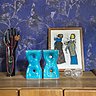 Et si le papier-peint n’était qu’une étape vers un ailleurs ? Déjà l’esprit et la main de Pascale s’évadent vers d’autres univers. Elle a trouvé un autre chemin pour canaliser sa créativité débordante…la céramique. Tout en continuant à développer ses collections, elle crée, de ses mains, des sculptures et objets aux formes géométriques imbriquées qu’elle développe aussi en panneaux muraux néo-cubistes. Est-ce l’un de ses modèles de papiers-peints qui lui a donné l’idée de créer en volume ? Un style à suivre, qui s’affirme concrètement…