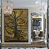 Dans ses réalisations, Stéphanie Coutas ose par exemple insérer une immense photo rétro-éclairée dans un univers XVIIIème. En mélangeant ainsi les styles, en travaillant les étoffes, la passementerie, en imaginant des stucs, des mosaïques, des marqueteries contemporaines de marbre, nacre ou cuir, son travail s’apparente à celui d’un décorateur ensemblier. Et bien que le métier de décorateur ensemblier soit un métier pour vendre du rêve, un métier généraliste, il lui semble indispensable d’être très sérieuse et méticuleuse dans la mise en œuvre.
