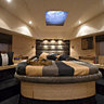 Sur le fly bridge d'un super yacht, on trouve une baignoire hydro massage avec chromothérapie et auto lavage...le fly (pont extérieur) est muni d'un taud pour se protéger du soleil, d'une zone transat et d'une dînette avec un rollbar équipé pour le repas servi autour d'une grande table. La majorité des éditeurs de textiles se sont lancés dans l'outdoor, mais les tissus sont plus ou moins efficaces en fonction des fibres utilisées. Le travail des tapissiers des bateaux n’est pas le même que ceux pour la maison. Ils ont besoin de matériaux très techniques, qui résistent à tout, qui ne se salissent pas, qui ne se froissent pas au montage et qui se lavent très facilement. Le top est de réaliser la base en skaï, puis un set déhoussable en tissu ou éponge élastique; en somme un outdoor tout confort ! Toutes les parties tapissées des extérieurs sont recouvertes d'une toile serrée qui les protègent durant les longs séjours en port.