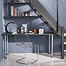 On trouve désormais des systèmes d’étagères à fixer directement à l’escalier, sous les marches, par l’intermédiaire de tubes en inox (Lapeyre), ou bien des systèmes d’étagères à accrocher sur des montants dont les modules de fixation permettent de suivre la pente sous l’escalier (Coolidoor).