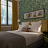 Les chambres poursuivent cette idée de douceur et de charme, et sont autant de pied-à-terre pour amis privilégiés. Toutes sont personnalisées, et certaines sont pourvues d’une terrasse ou d’un balcon. Une hospitalité partagée avec passion ajoutée à un savoir faire authentique, se dégage du lieu imaginé par le décorateur Stéphane Poux et les architectes Artefak - Bastie & Behzadi. Déjà expert et reconnu pour ses réalisations d’appartements parisiens, Stéphane Poux s’est livré à l’exercice de la chambre particulière en préservant son caractère d’unicité. Par instinct, il mêle ses goûts personnels, jouant avec les textiles et les papiers peints des grands éditeurs, les pièces chinées et les références du mobilier contemporain… Le tout est orchestré avec un sens raffiné des couleurs et des matières, propre à une décoration chic et moderne.