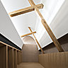 A l’intérieur, cinq juniors suites seulement, pour préserver le calme environnant et un spa minéral dont les soins sont inspirés des bains romains alsaciens. La nouvelle annexe offre une expérience aussi bien sensorielle que spirituelle, en offrant, non seulement, un enchantement et un plaisir des sens, mais aussi une invitation à se recentrer sur soi. Les chambres offrent une décoration épurée. Les salles de bains en pierre noire se révèlent derrière un panneau de bois coulissant, permettant de prendre son bain en regardant le jardin et la rivière en contrebas. Les larges fenêtres des cinq chambres ainsi que la disposition des claustras en bois sur l’ensemble du bâtiment permettent de faire entrer la lumière naturelle. Dans le volume de béton, une faille a été creusée pour laisser cette clarté s’engouffrer dans les circulations comme si le ciel traversait le lieu de part et d’autre.
