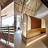 Quant au Spa des Saules, c’est un lieu chaleureux dédiée à la relaxation et à la détoxication : matériaux sensuels, codes très discrets, tout est fidèle à l’authenticité du projet. Dans les salles de repos, une pierre chaude XXL en béton représente l’idée d’un galet passé dans une cheminée. Patrick Jouin et Sanjit Manku ont dessiné un espace intemporel où chaque détail semble avoir été inscrit là depuis toujours. A l’intérieur, on trouve deux bassins dans les salles de repos, l’un à 13°, l’autre à 38°. Celui-ci se prolonge à l’extérieur où la charpente de chêne semble le recouvrir et le protéger. Dans les salles de repos, on retrouve aussi le motif récurrent de la feuille de saule sculpté dans le bois des lits de relaxation. Un sauna et un hammam complètent la carte des soins proposés et conçus sur mesure à base d’ingrédients naturels et biologiques de la région. Autour du bâtiment, le jardin réalisé en collaboration avec Silvio Rauseo propose une vision pittoresque et bucolique de la nature alsacienne.