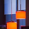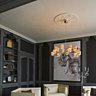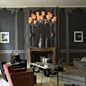 Au plafond, deux grands lustres Movelight répandent une douce lumière et font le lien entre les deux parties du salon.