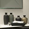 La cheminée d’origine en marbre a été conservée et se modernise par une série de grands vases en céramique mat Kosé.